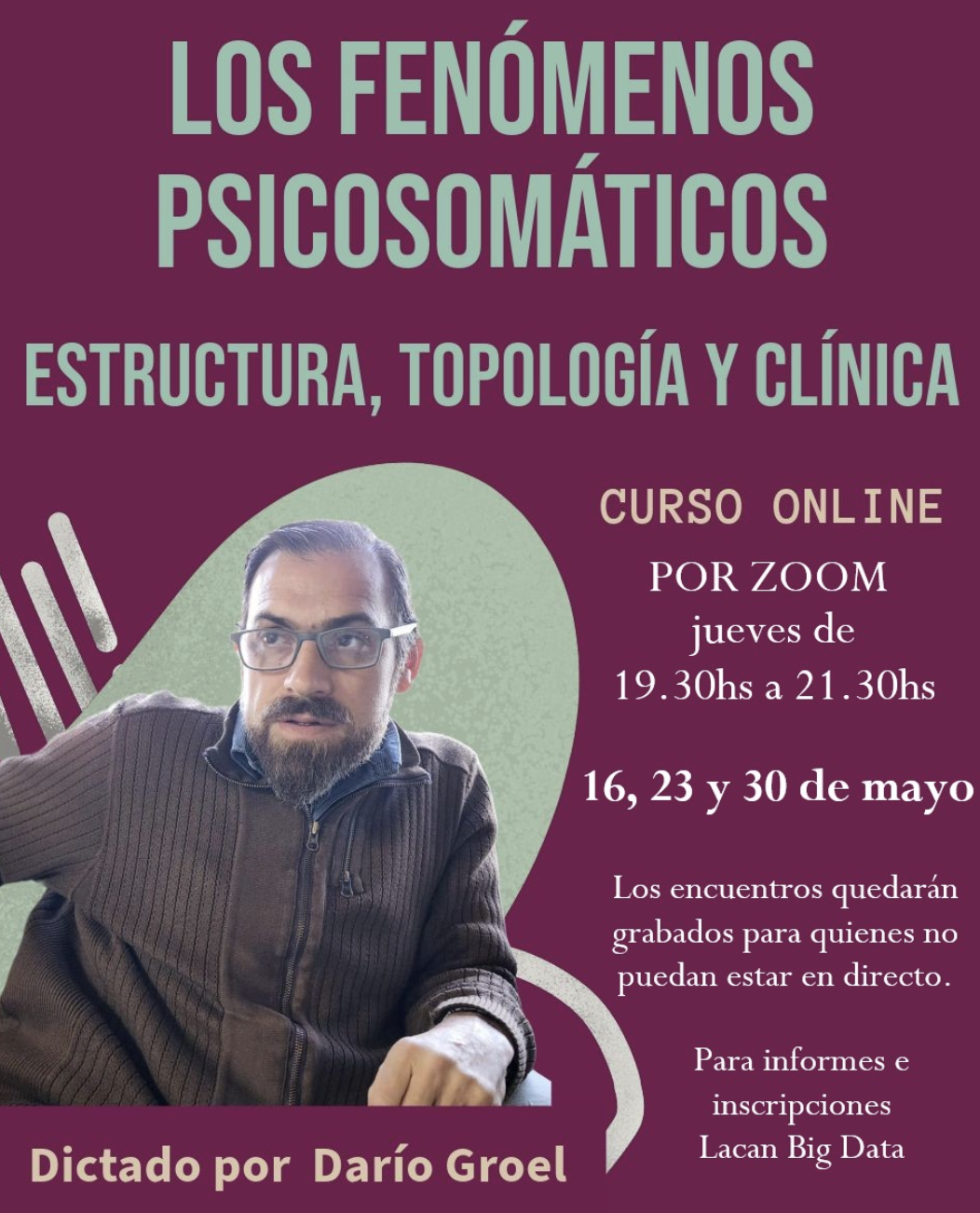 - Curso Virtual Fenómenos psicosomáticos: estructura, topología y clínica . Para Lacan BigData, 3 encuentros en mayo de 2024.