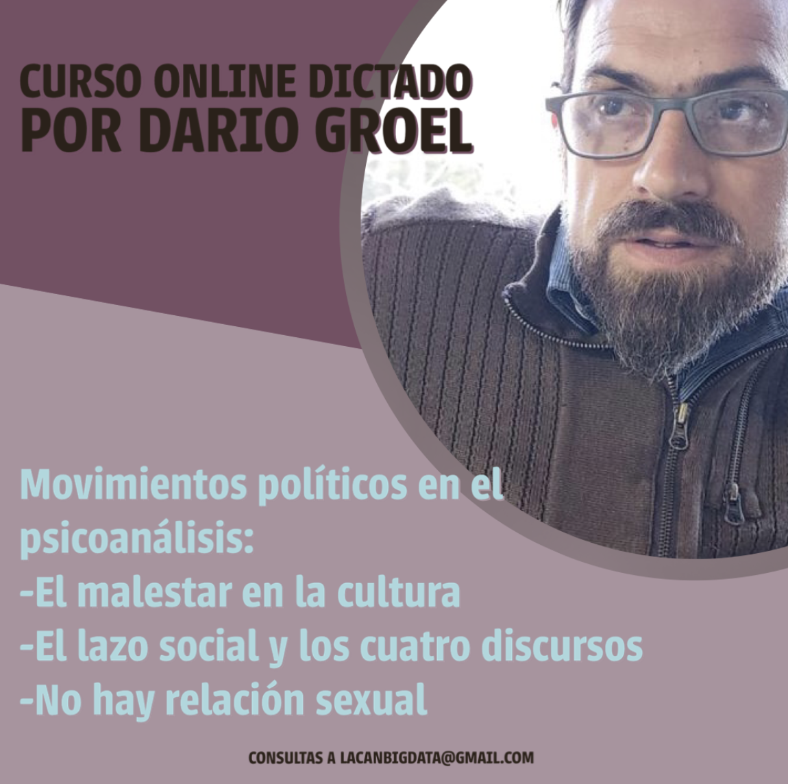 - Curso Virtual Movimientos políticos en psicoanálisis: ….. Para Lacan BigData, 3 encuentros en noviembre de 2022.