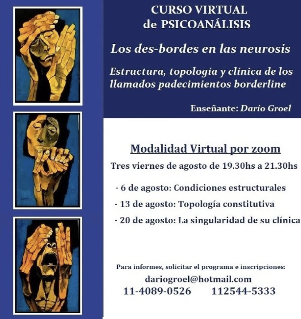 - Curso Virtual Los desbordes en las neurosis: estructura, topología y clínica. Para EPSM y Ex-sistencia, 3 encuentros en agosto de 2021.